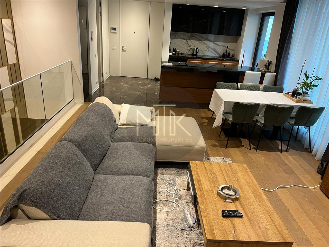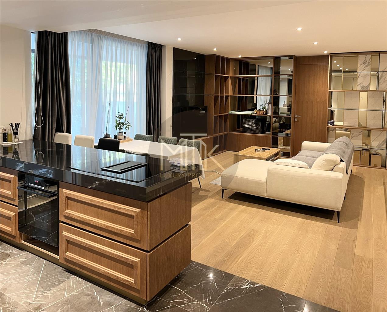 Esteticul si functionalitatea se unesc armonios in design-ul acestui apartament, iar bucataria deschisa este dotata cu electrocasnice de ultima generatie. Compartimentarea interioara de altfel ofera multiple zone de depozitare atat de necesare unei locuinte.