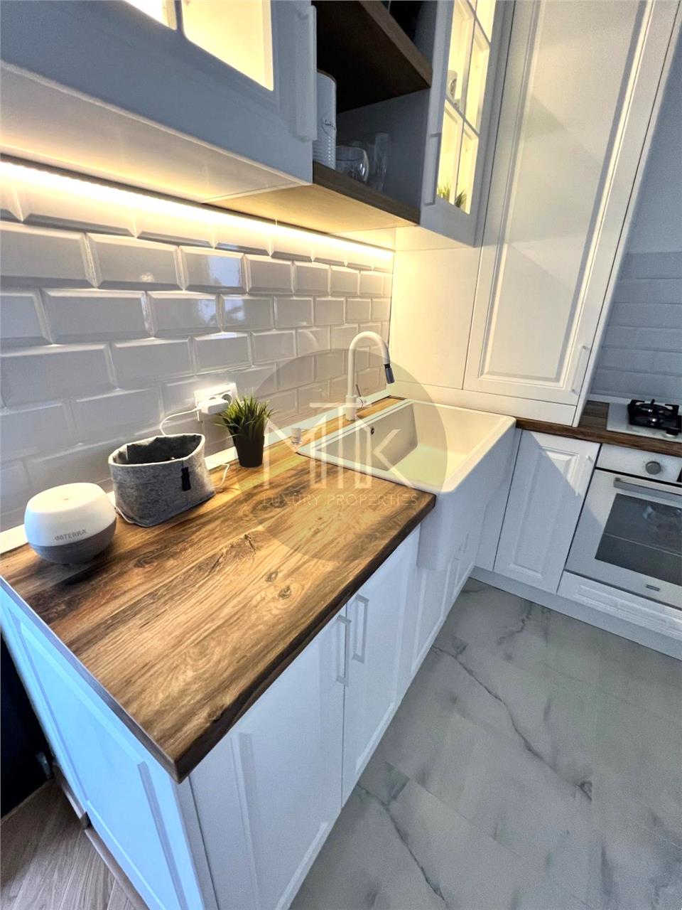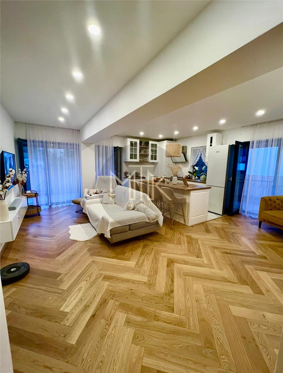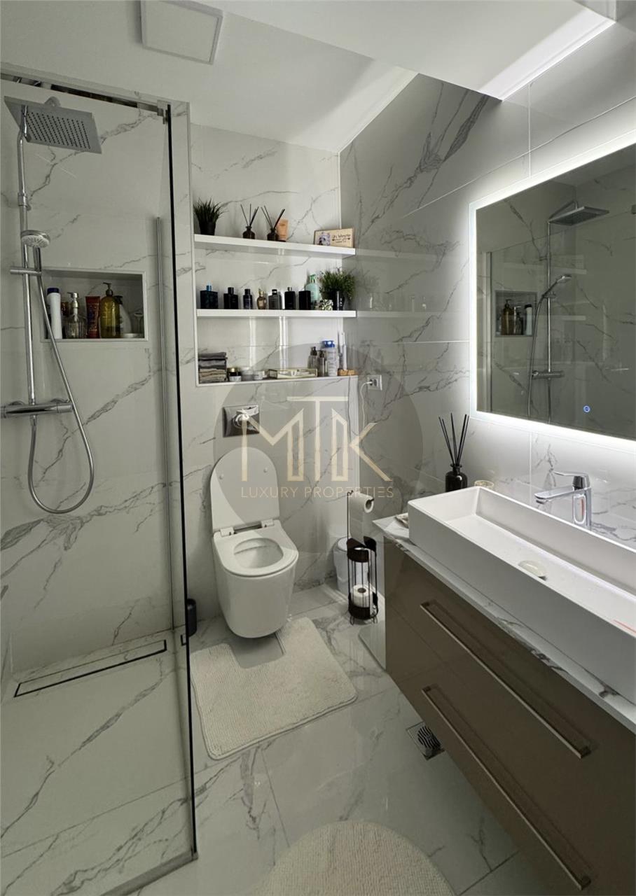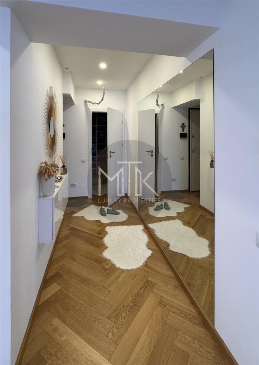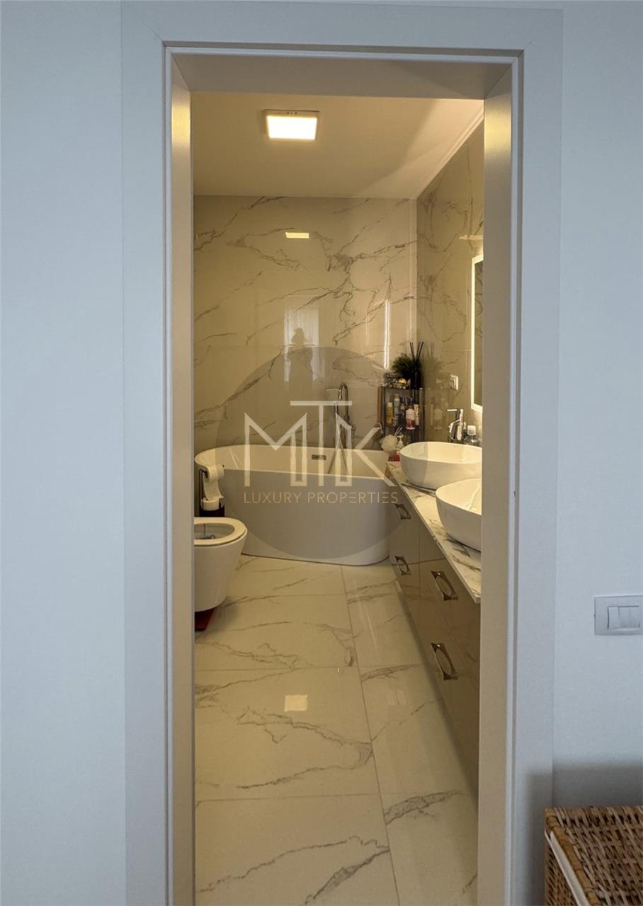 Acest apartament elegant imbina designul modern cu functionalitatea, oferind un spatiu de locuit rafinat si confortabil. Mobilierul a fost facut pe comanda, canapelele si fotoliile sunt din gama Rovere, un brand renumit pentru calitatea superioara si atentia la detalii. Bucataria este complet mobilata si utilata cu electrocasnice de ultima generatia marca Miele, gatitul devenind astfel o placere.