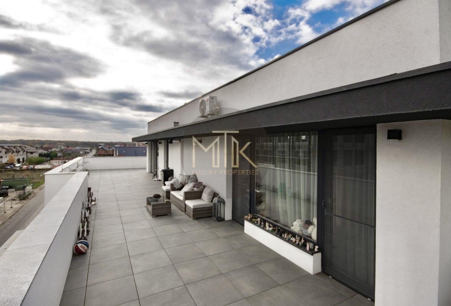 MTK Real Estate are placerea de a va prezenta spre achiziție o proprietate exclusivista, un apartament tip Penthouse de 3 camere + 1 camera dedicata dressing-ului , situat intr-un cartier linistit, aerisit si sigur, zona MATEI MILLO, Voluntari, un loc ideal pentru o familie care cauta rafinament si confort absolut.