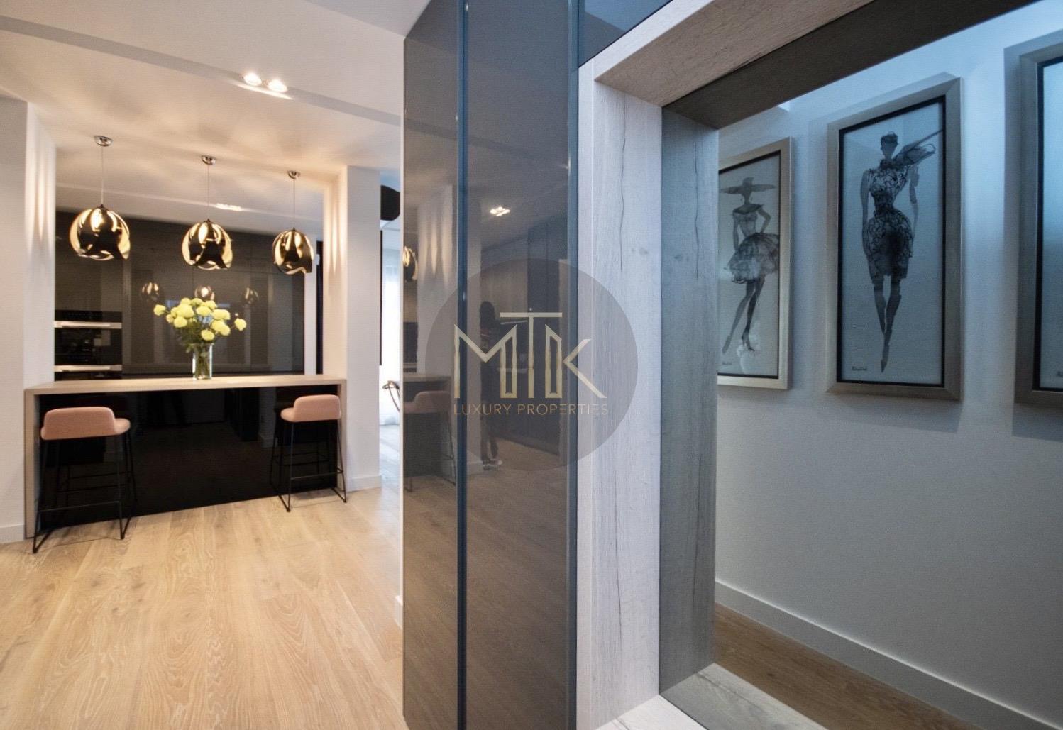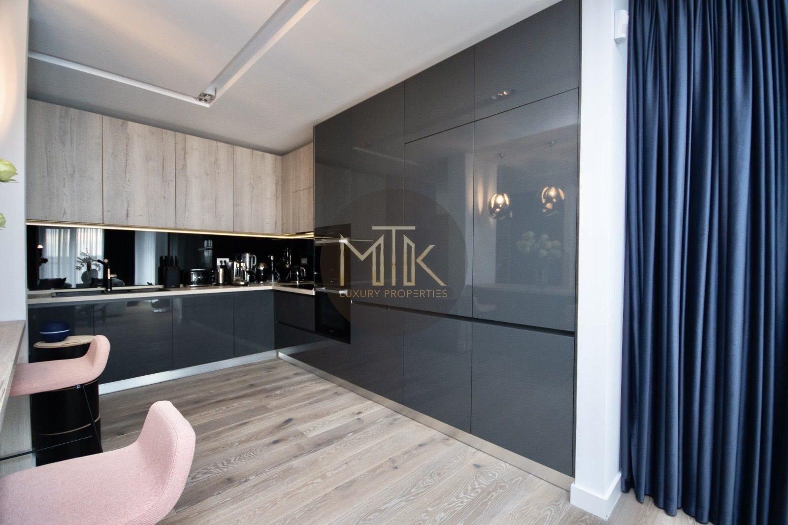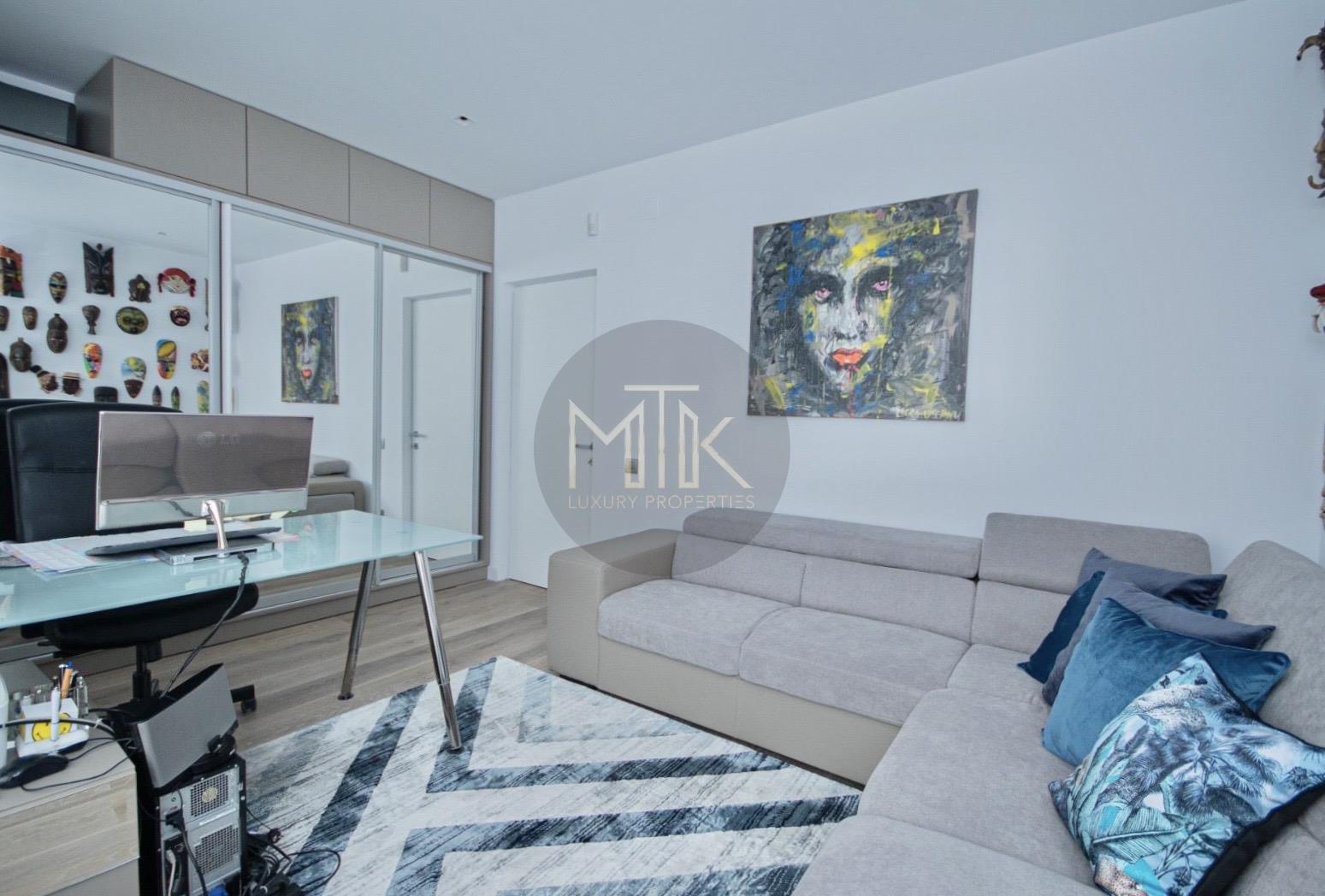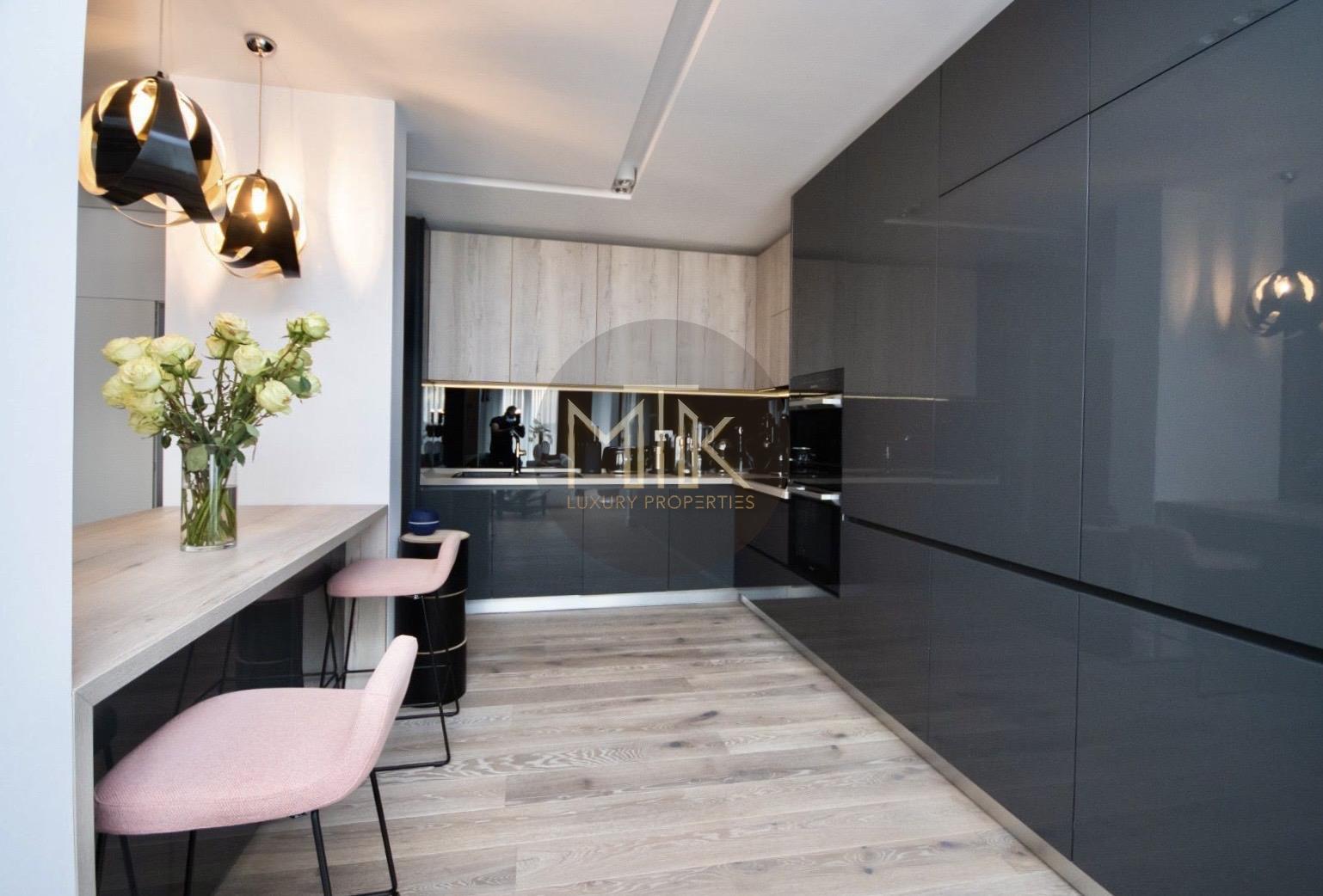 Compartimentarea este generoasa si foarte bine gandita pentru confortul zilnic. Livingul are o suprafata de 45 mp si include un semineu pe bioetanol, fiind un spatiu luminos si primitor. Bucataria de 14 mp este complet mobilata si echipata cu electrocasnice Miele de ultima generatie. Zona de noapte cuprinde un dormitor matrimonial de 30 mp cu acces la balcon, o baie dedicata de 12 mp si un dressing separat, extrem de spatios, de 15 mp. Locuinta mai dispune de un al doilea dormitor de 16 mp, care poate fi utilizat si ca birou, o baie de serviciu de 7 mp si un hol de primire de 8 mp.
