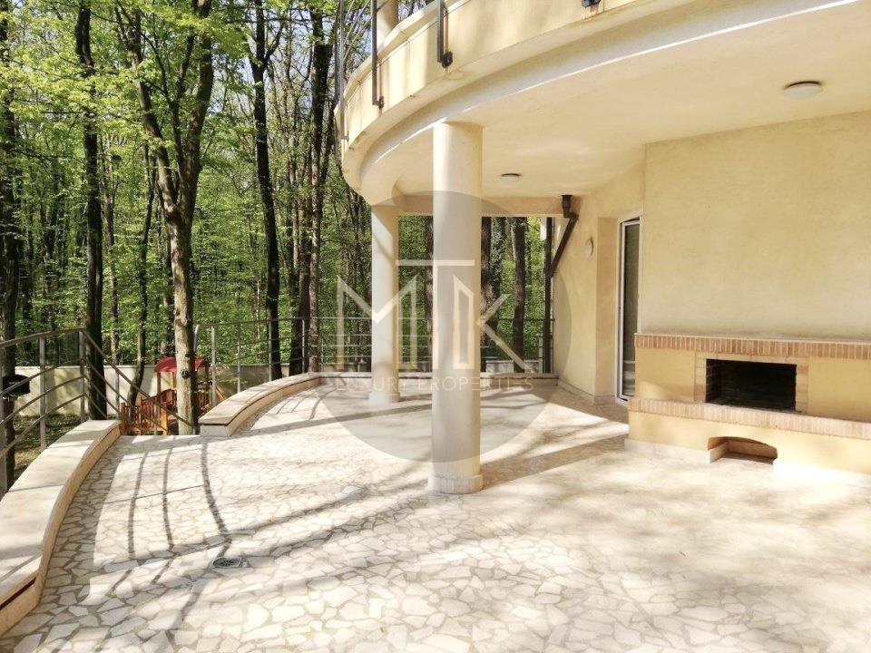 Apartamentul se afla la etajul 1 si este format dintr-un living spatios de 47MP cu semineu, si iesire pe terasa ce are vederea spre padure, bucataria inchisa complet mobilata si utilata ce beneficiaza si de o camara si un balcon generos, 4 dormitoare care pot fi amenajate in functie de preferinte si transformate foarte usor in birou sau loc de joaca pentru copii, 3 bai, un hol de acces cu multiple spatii de depozitare si dressing, 7 terase cu vedere superba asupra curtii interioare de cca 2000MP care a fost amenajata ca un parc forestier.