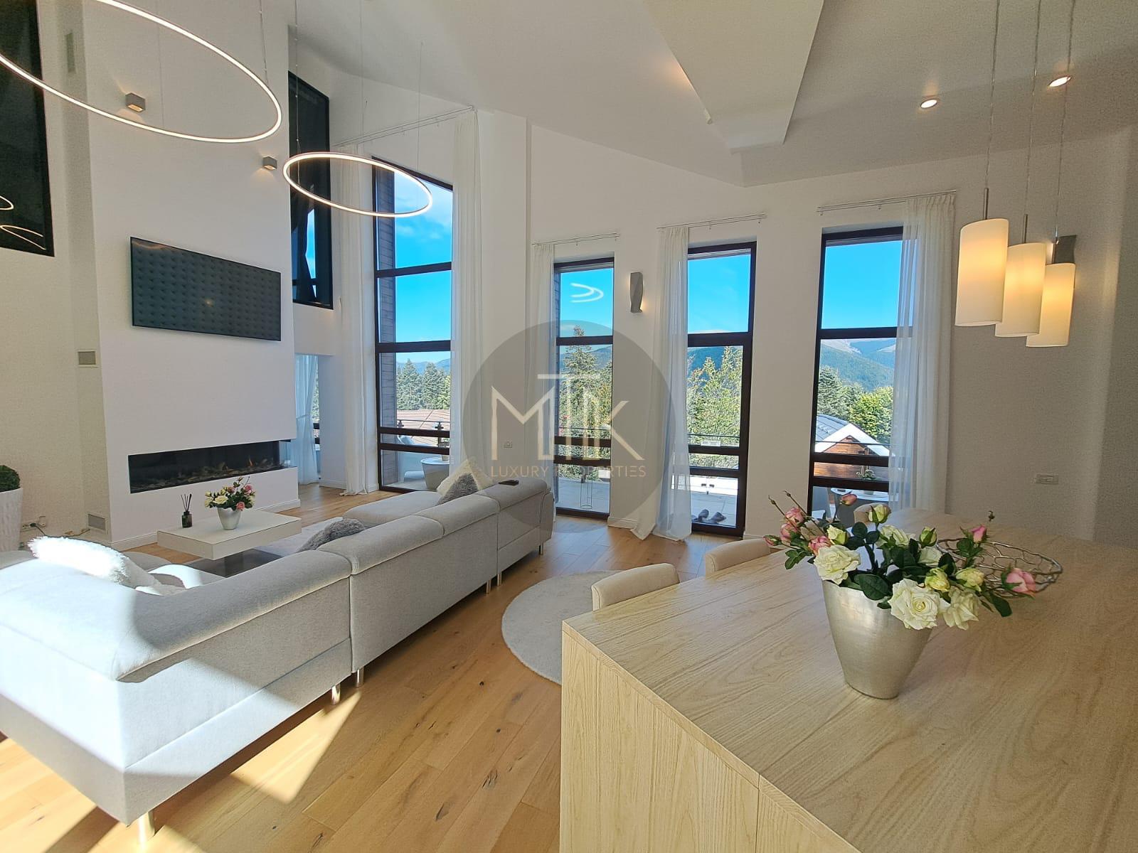 MTK Real Estate va propune spre achizitie un penthouse spectaculos, amenajat modern, situat într-o vilă nou construită în inima stațiunii Sinaia, în apropiere de Cota 1400 și statia de Telegondolă.