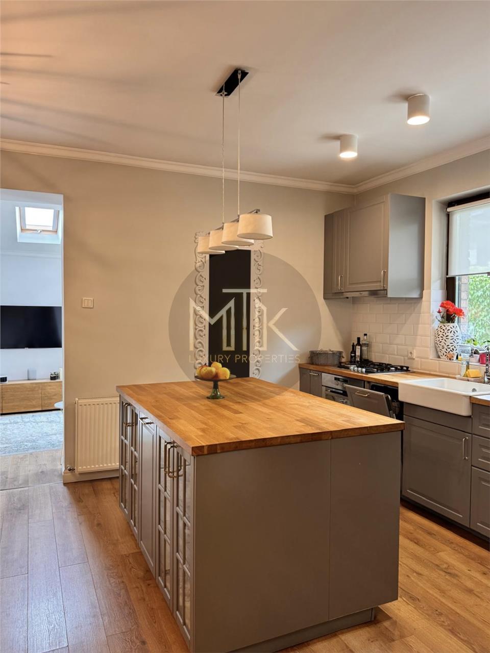 Construita in 2015 si complet renovata in 2025, vila are un regim de inaltime P+1+M si o suprafata totala de 180 mp. La parter se regaseste un living spatios cu zona de dining si bucatarie open-space, delimitate elegant printr-un cadru care separa vizual spatiile, pastrand in acelasi timp senzatia de deschidere si luminozitate. Tot la acest nivel se afla o baie moderna, amenajata cu finisaje de calitate. La etajul 1 se afla dormitorul matrimonial, prevazut cu un dressing generos si baie proprie, oferind intimitate si confort. Mansarda gazduieste doua dormitoare luminoase, fiecare cu dressing propriu, deservite de o baie eleganta.