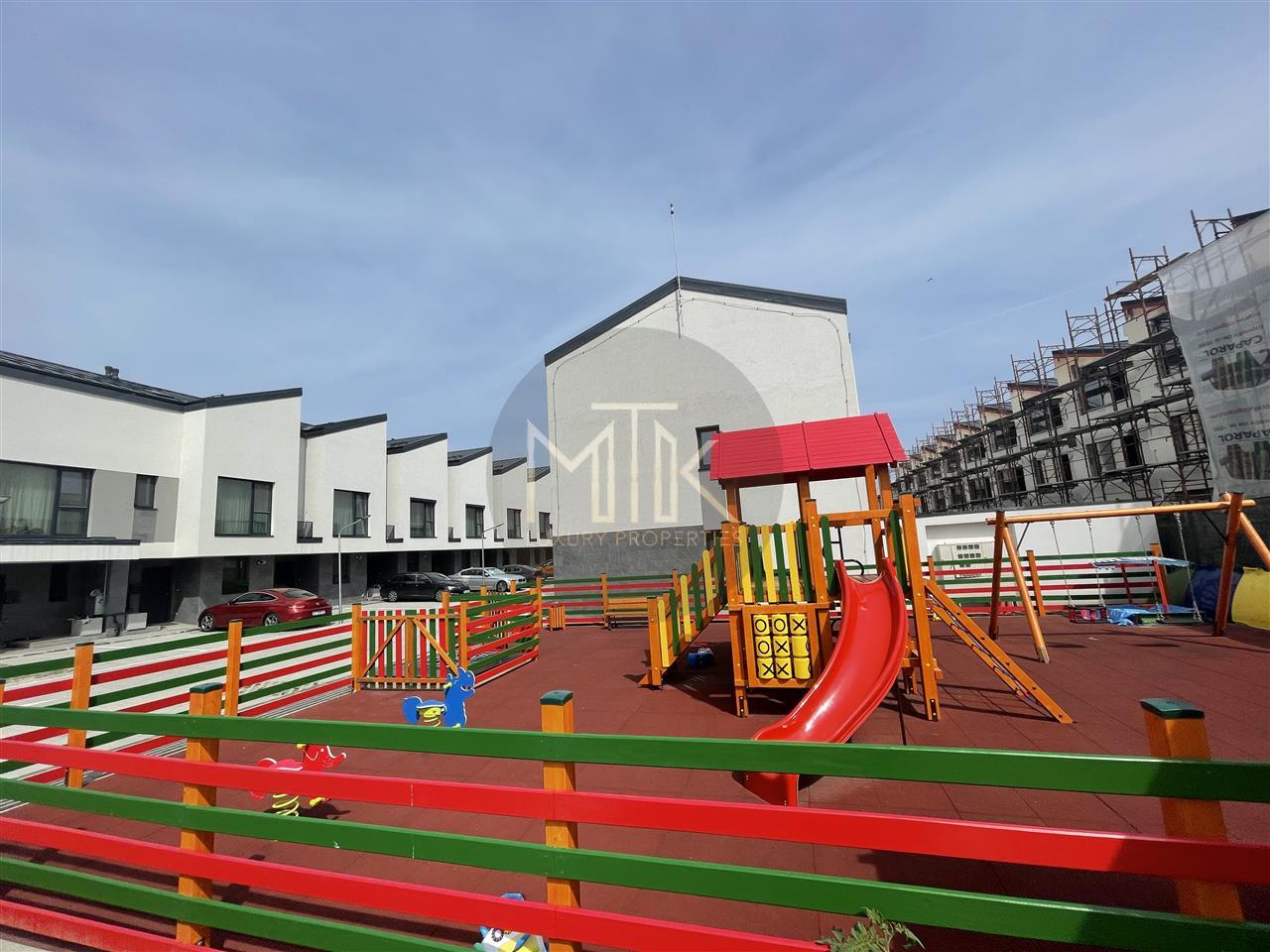 Intregul ansamblu, ce se desfasoara pe un teren de 15 606 mp, prevede drumuri de acces generoase pentru fiecare tronson de case cu trotuare, parcare pentru vizitatori, loc de joaca pentru copii, spatii verzi, zona de piscina exterioara semi-olimpica (20mX12m) si securitate, totul integrat intr-o comunitate moderna.