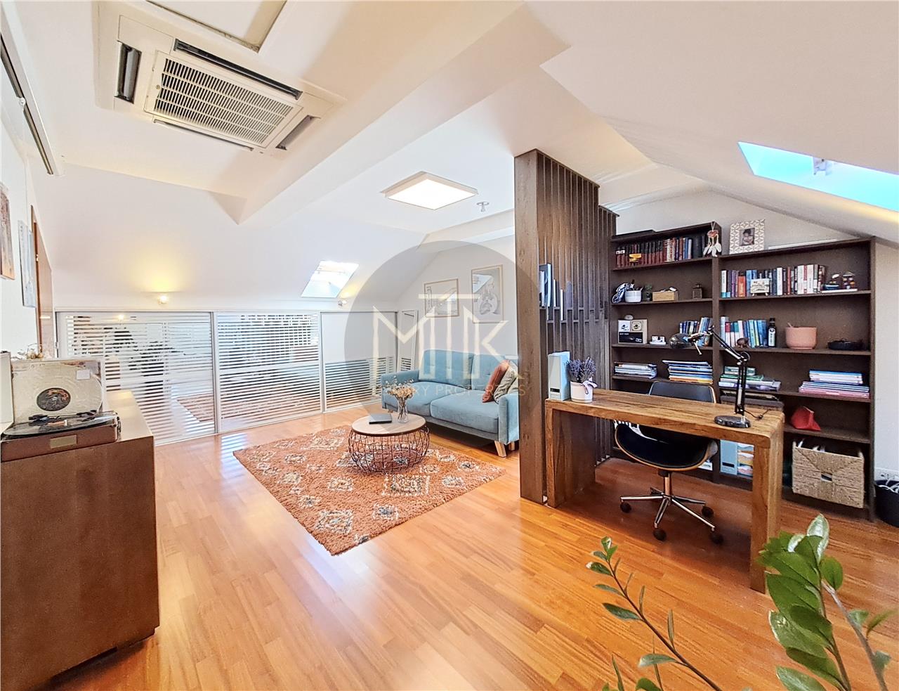 - Mansarda vilei este un open space generos si inalt, ce poate fi birou, dressing, zona de depozitare sau chiar un nou dormitor, ce beneficiaza de multiple spatii de depozitare.