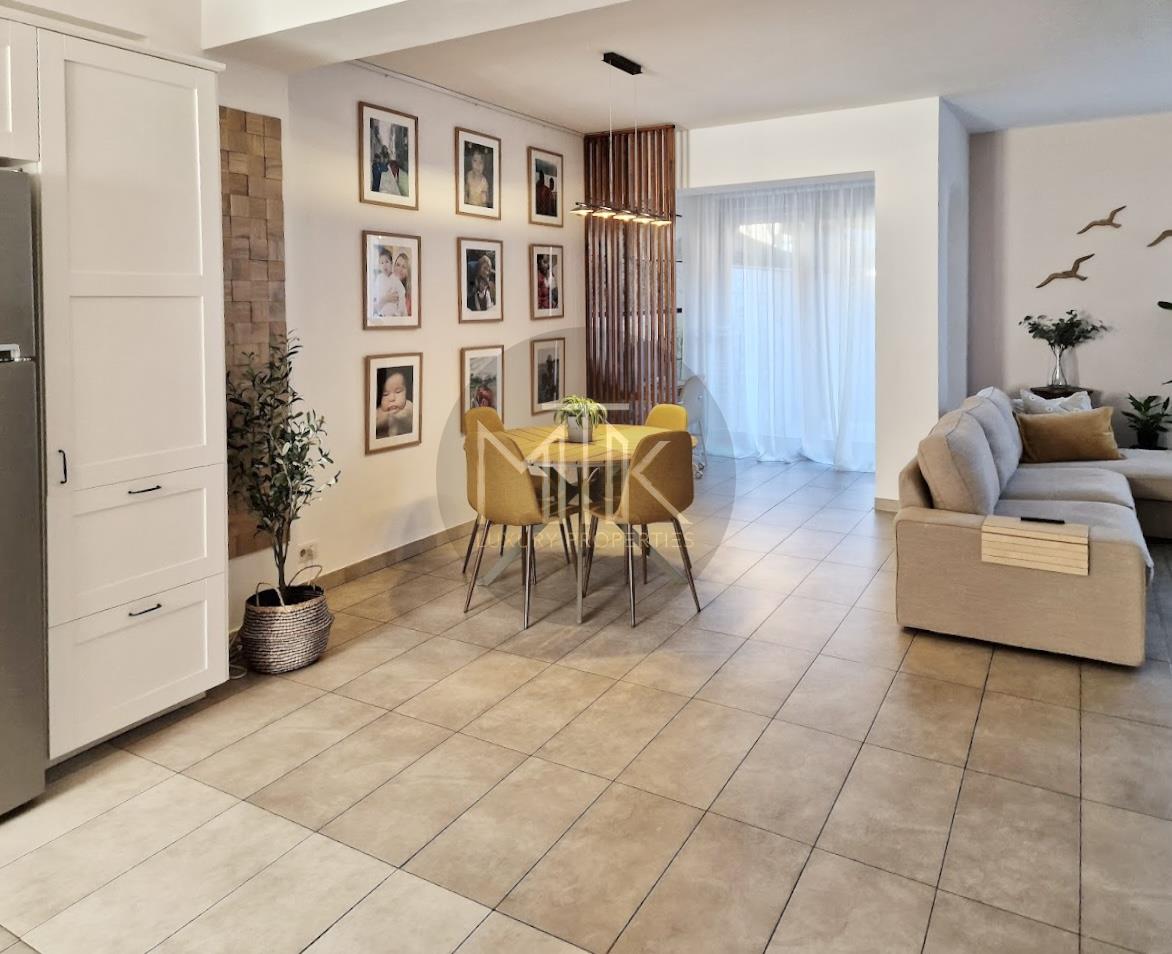 - Parterul este format dintr-un living spatios cu zona de dining cu acces catre curte, bucatarie open space , o baie de serviciu, un spatiu de depozitare (camera tehnica), terasa acoperita, o gradina individuala pavata ce beneficiaza de o bucatarie de vara si un foisor;