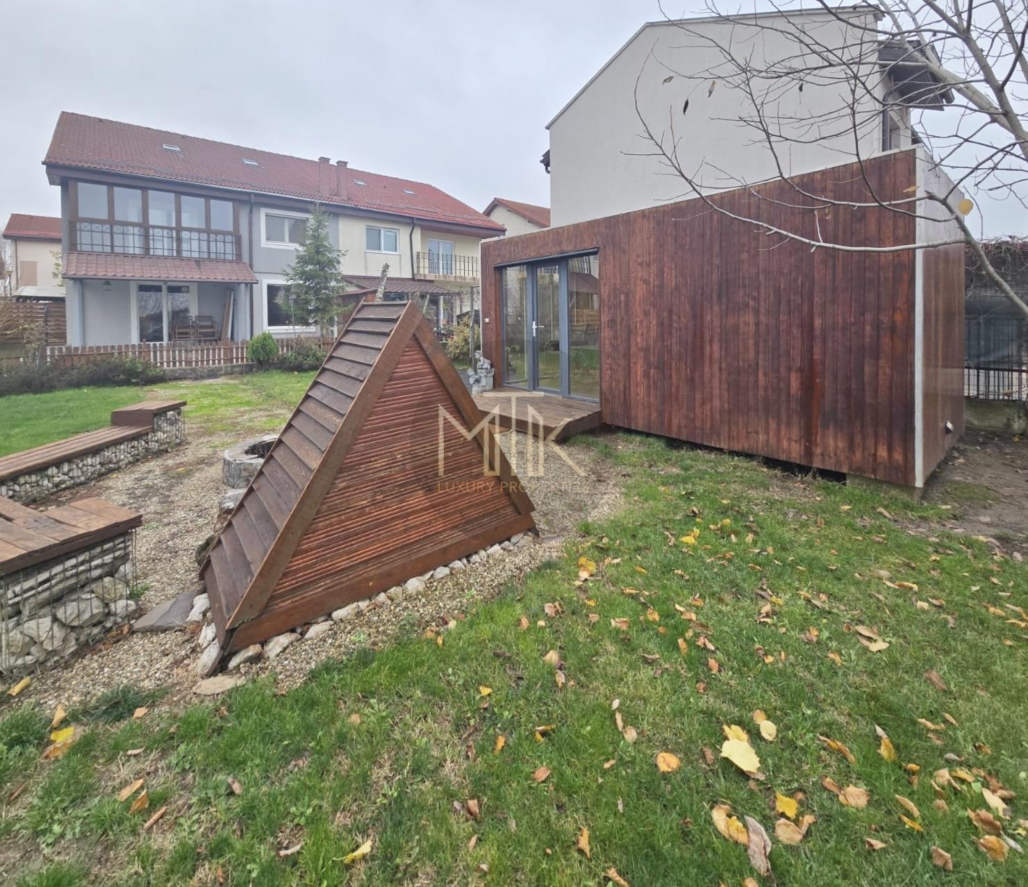 Casa este situata pe un teren generos, cu o gradina frumos amenajata si o livada cu pomi fructiferi, o vie si o gradina de legume ce au sistem automatizat de irigatie. Livada ofera atat umbra in zilele toride de vara cat si fructe proaspete. Fireplace-ul este un plus fiind amplasate scaune din lemn confortabile, oferind o atmosfera cozy in serile racoroase.