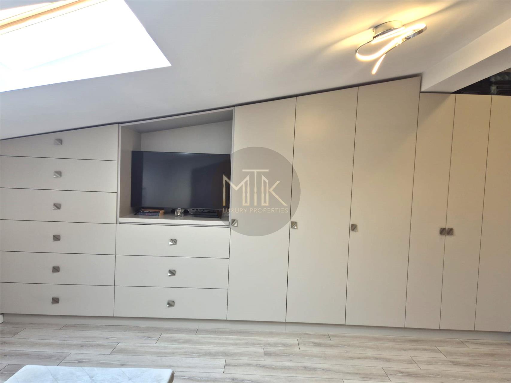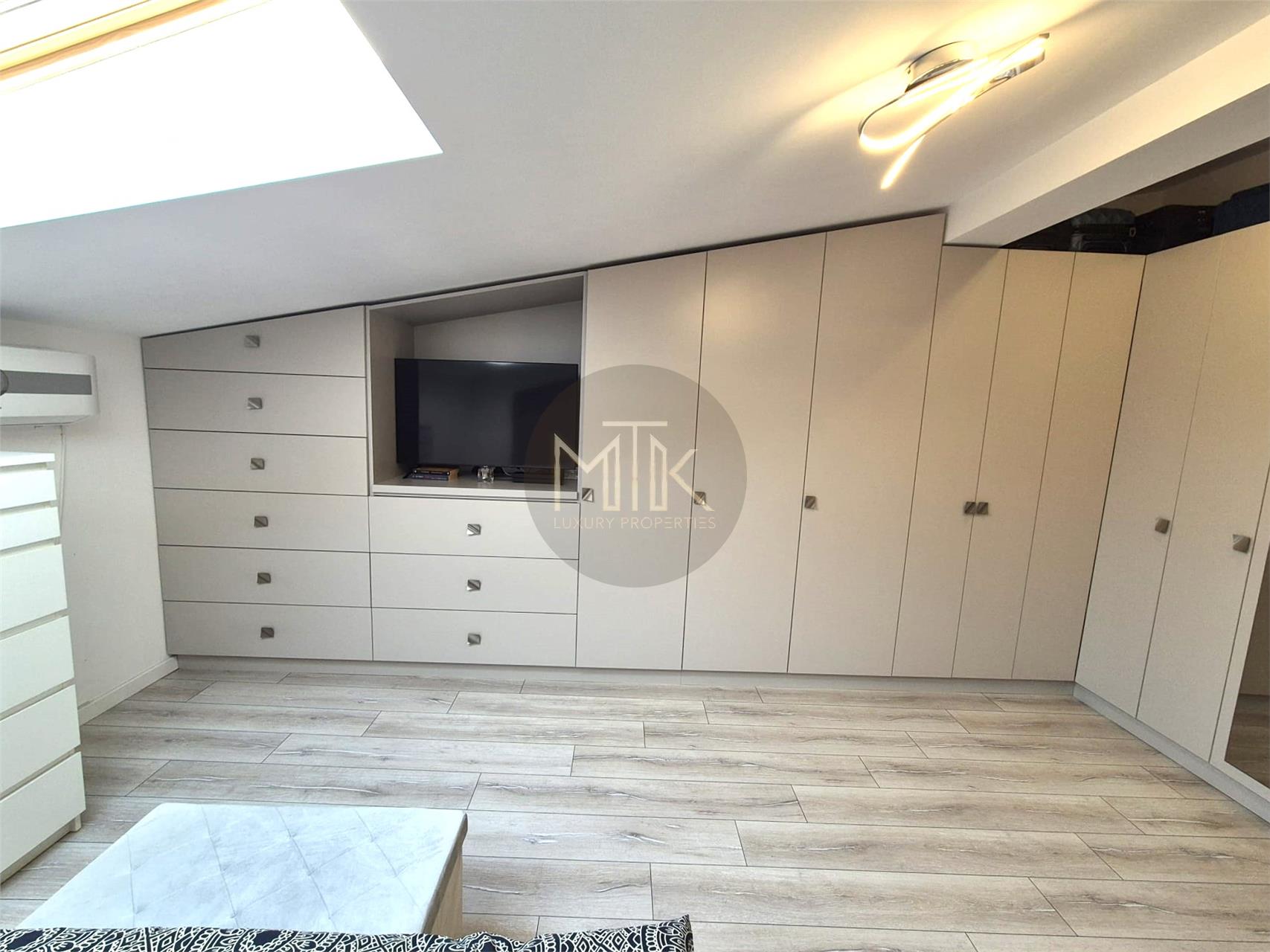- Mansarda dispune de 2 camere, care impart o baie aflata pe hol. Asadar regasim: un dormitor perfect pentru a va bucura de intimitatea de care aveti nevoie si o camera secundara pe care o puteti amenaja in functie de necesitate: loc de joaca pentru copii, dresing de tip walk in sau birou.