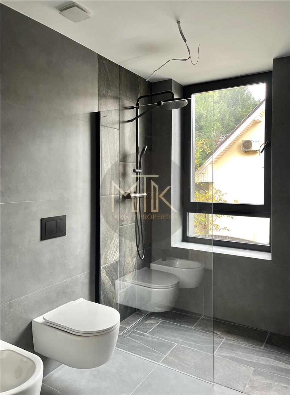 - La parter regasim un living generos, open-space cu zona de dining si bucatarie, cu iesire pe terasa si in curte. Tot la acest nivel regasim 1 baie de serviciu, garajul si liftul, lucru care faciliteaza deplasarea intre etaje.