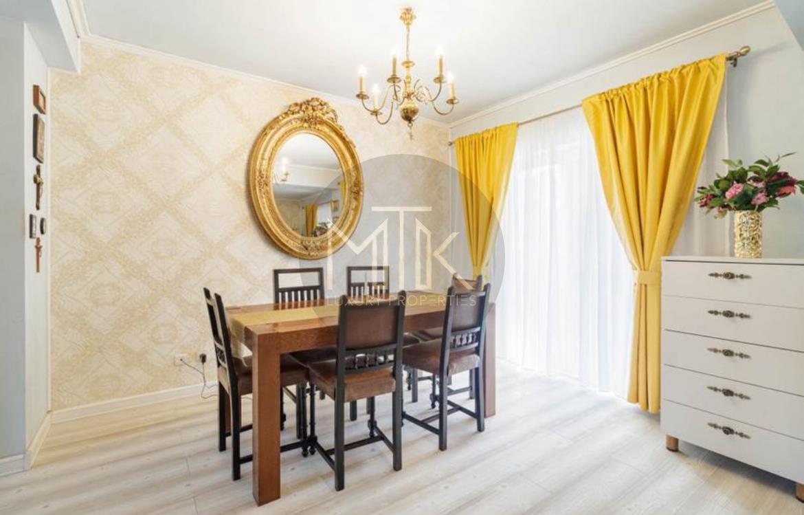 MTK Real Estate va propune spre vanzare o proprietate deosebita, situata in zona Pipera, in cartierul Azur. Aceasta casa cocheta se distinge printr-un concept de amenajare interiora deosebit, fiind o fuziune eleganta intre modern si clasic. Interiorul armonizeaza piese de mobilier clasic autentice, achizitionate prin licitatii, cu elemente de mobilier modern, rezultand un spatiu plin de caracter, rafinament si confort contemporan.