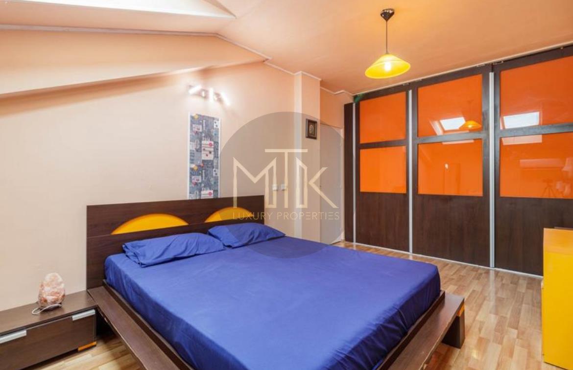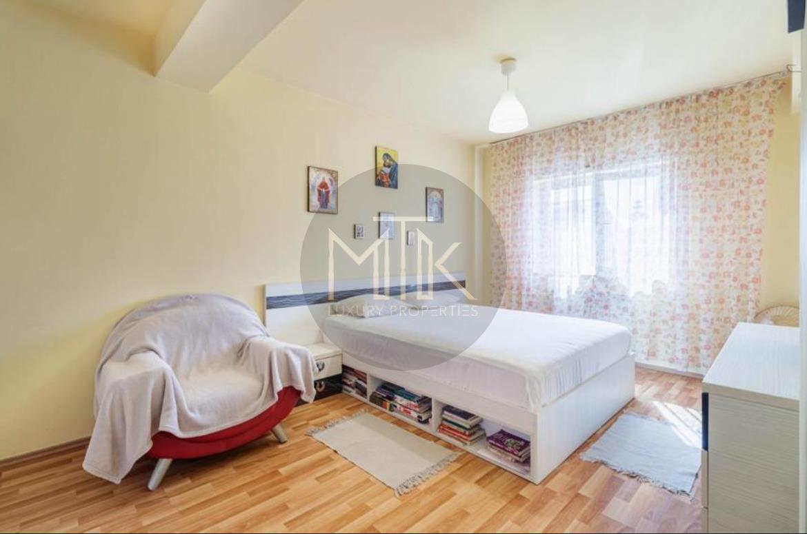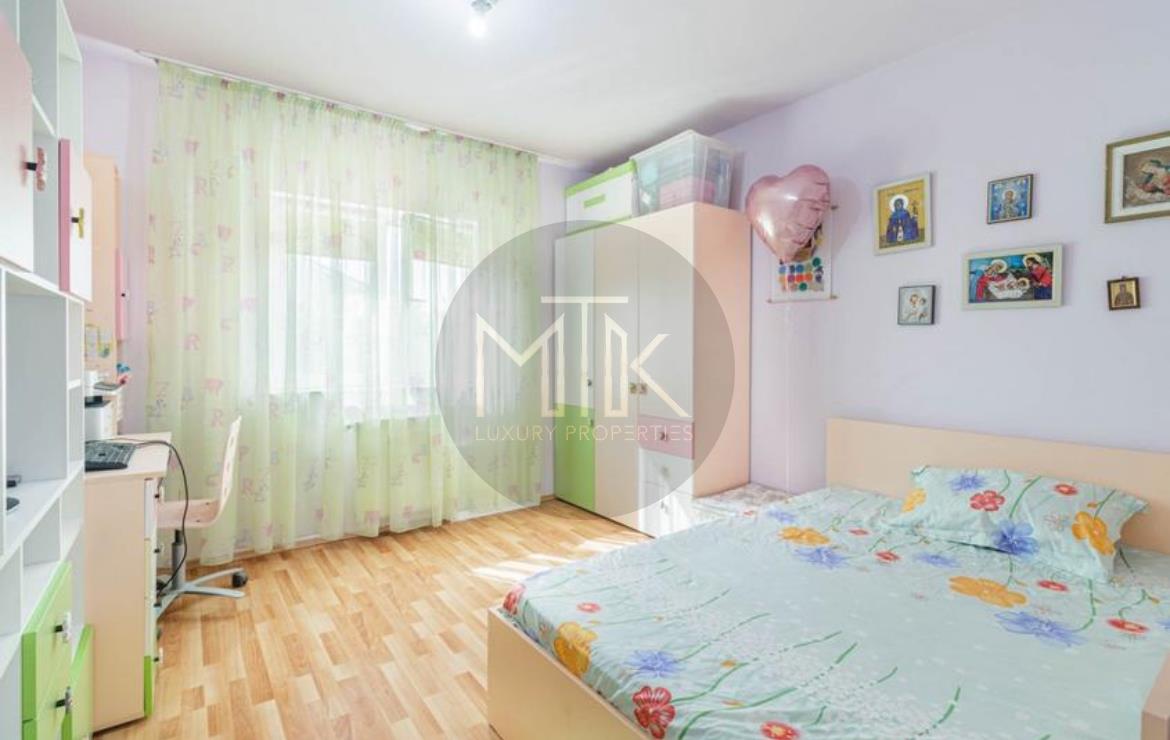 - 1 dormitor dotat cu pat king-size si dressing realizat pe comanda, pe tot peretele + 1 dormitor secundar cu mobilier de copii;