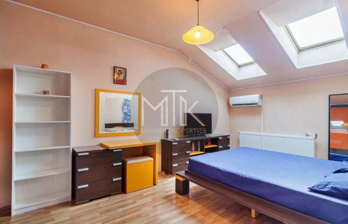 - 1 dormitor dotat cu pat king-size, dressing pe tot peretele si ferestre ce aduc lumina naturala din abundenta si ofera o priveliste relaxanta catre cer;