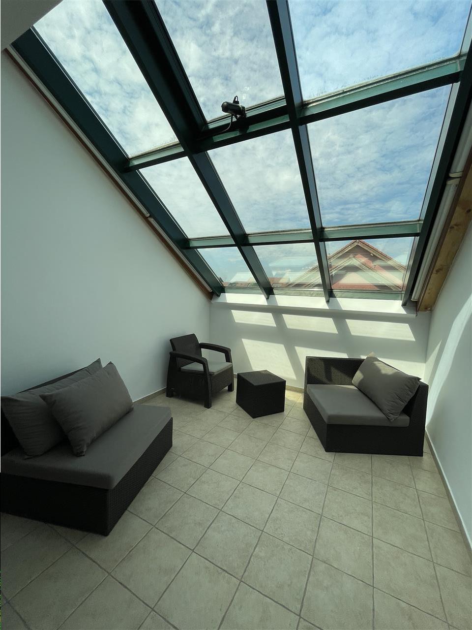 - La Mansarda regasim un open space de 25 MP ce poate fi amenajat cum se doreste, o camera cu o suprafata de 27MP, o terasa de 12 MP, SAUNA cat si Liftul.
