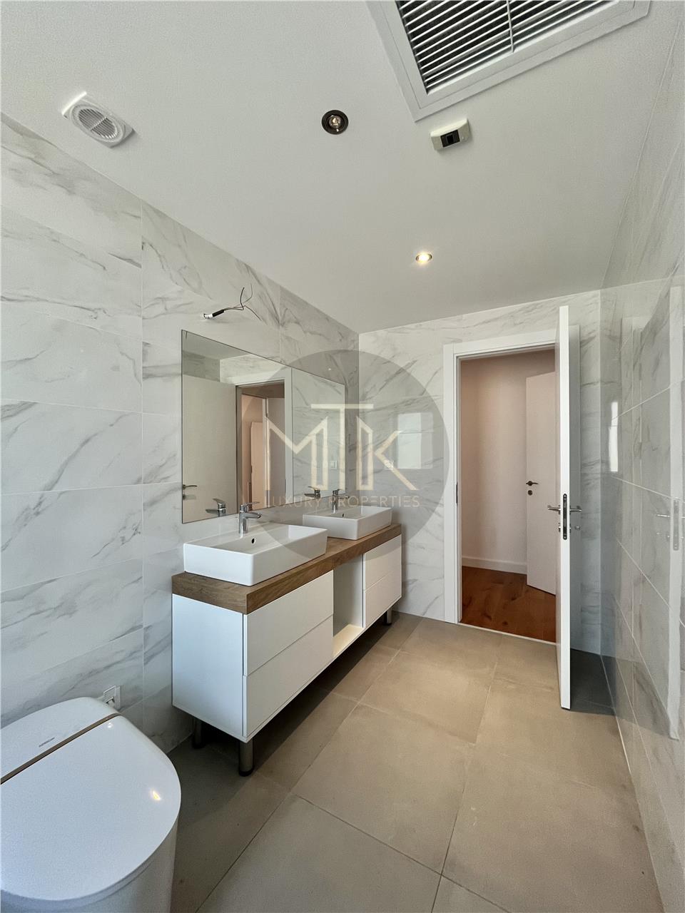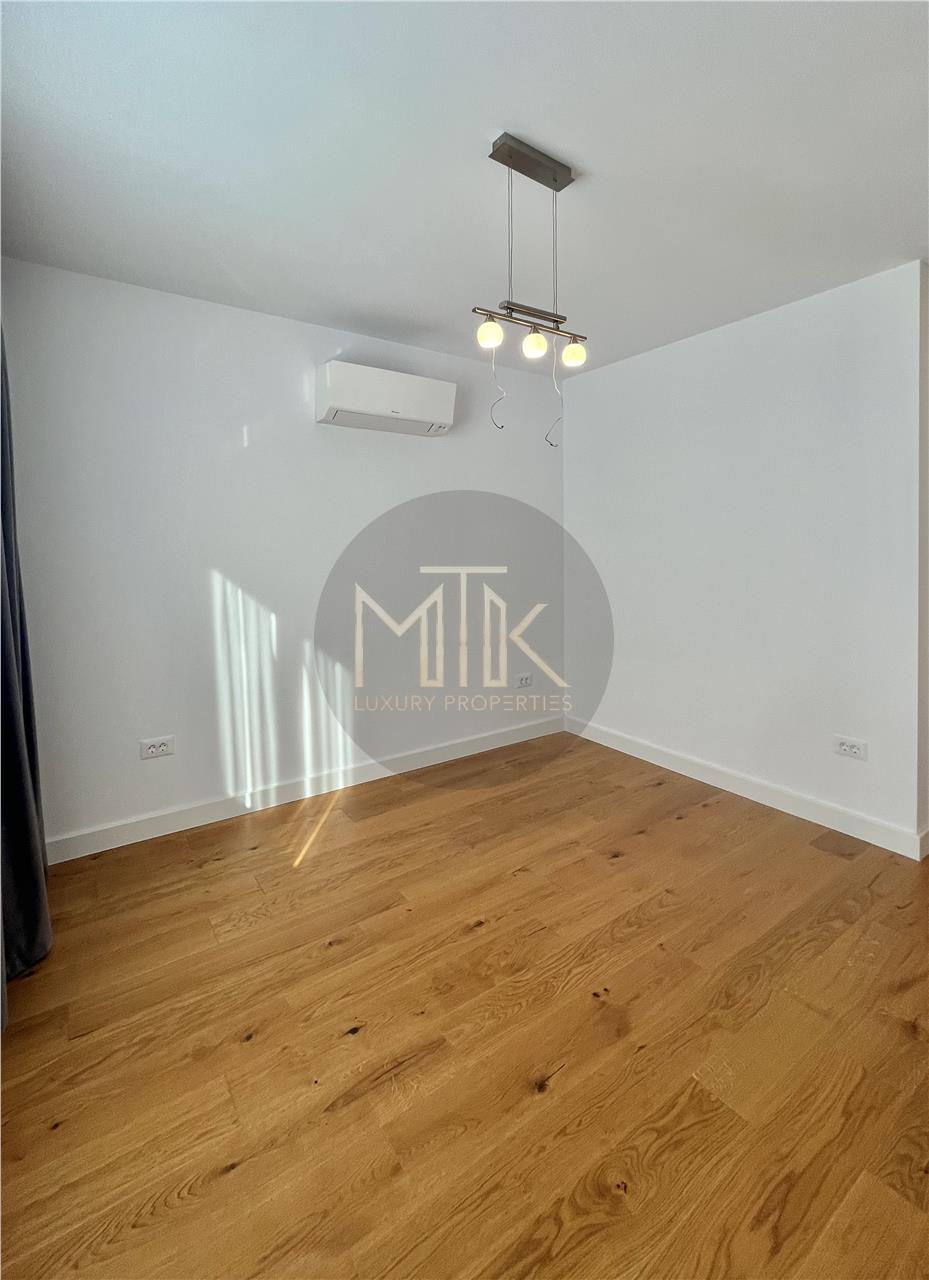 Sistemul de aer condiționat este premontat în pereți și plafoane - de tip duct în living (ascunse în plafon) și de tip split în dormitoare și sunt montate în fiecare cameră.