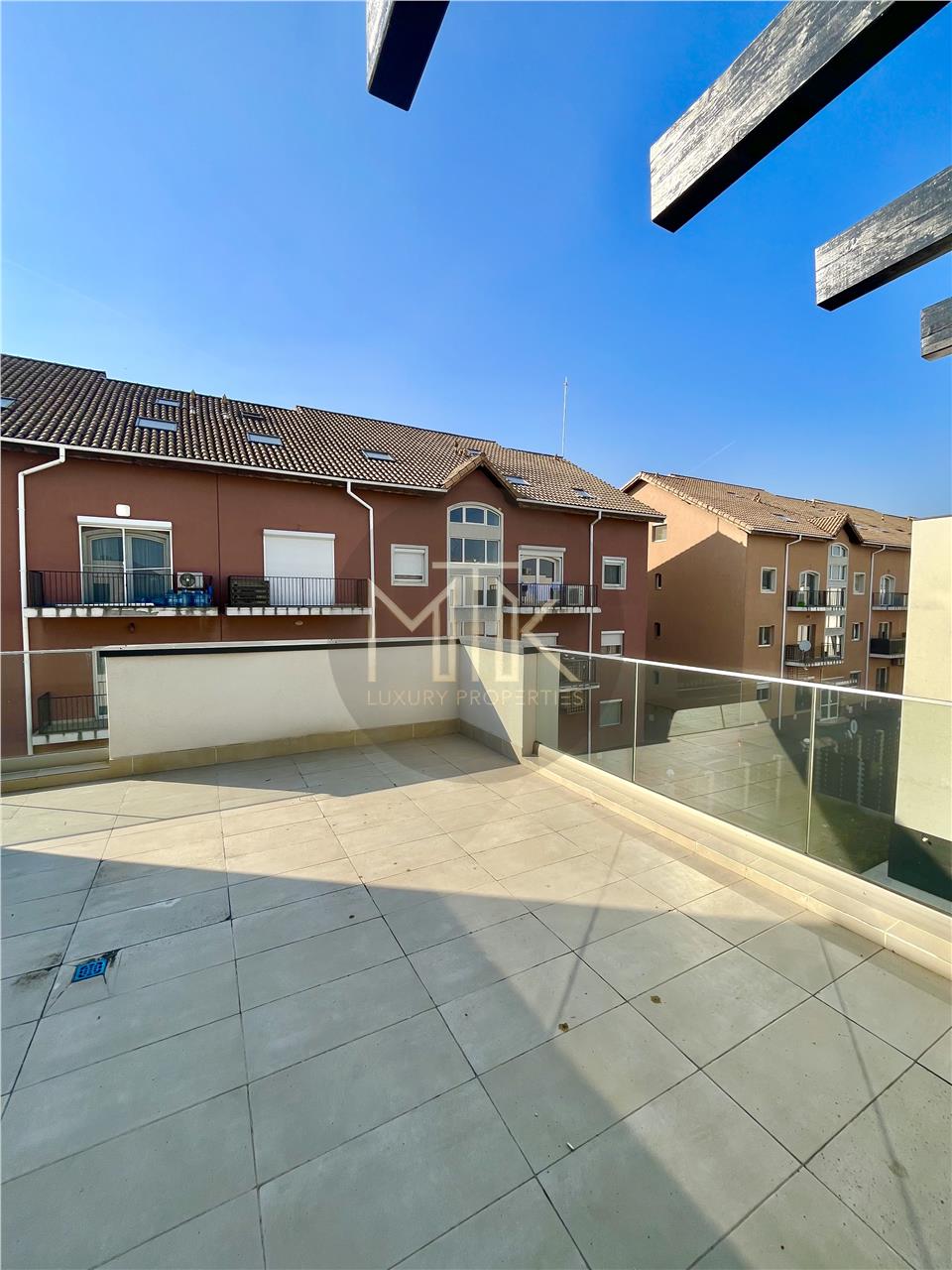 - etajul 2: dormitorul matrimonial cu baie si doua dressinguri si un birou cu o terasa spatioasa de 25 mp.
