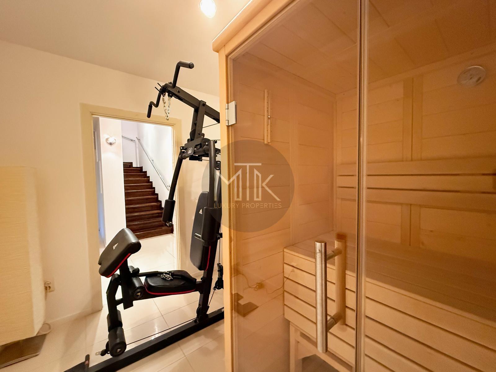 - Parter: living luminos si spatios cu inaltimea de 6m, bucatarie cu zona de dining, un dormitor de oaspeti dar care poate fi usor transformat in birou, hol intrare, sala de fitness si sauna, scari, terasa exterioara;